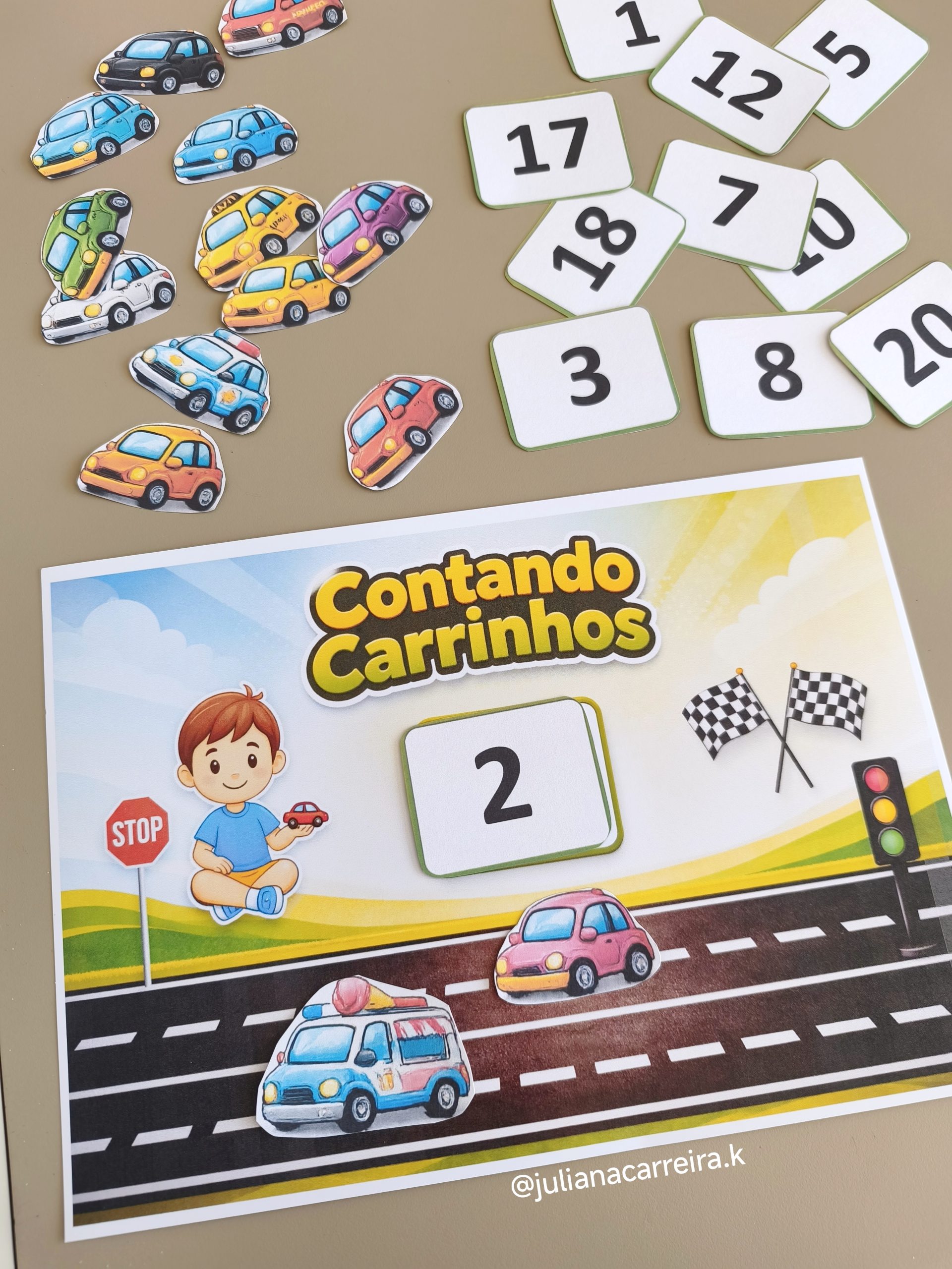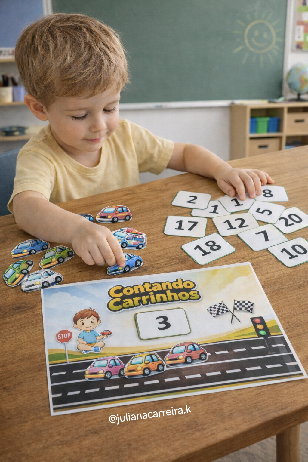🚗🛣️ As crianças aprendem a contar e relacionar números e quantidades enquanto brincam com os carrinhos!