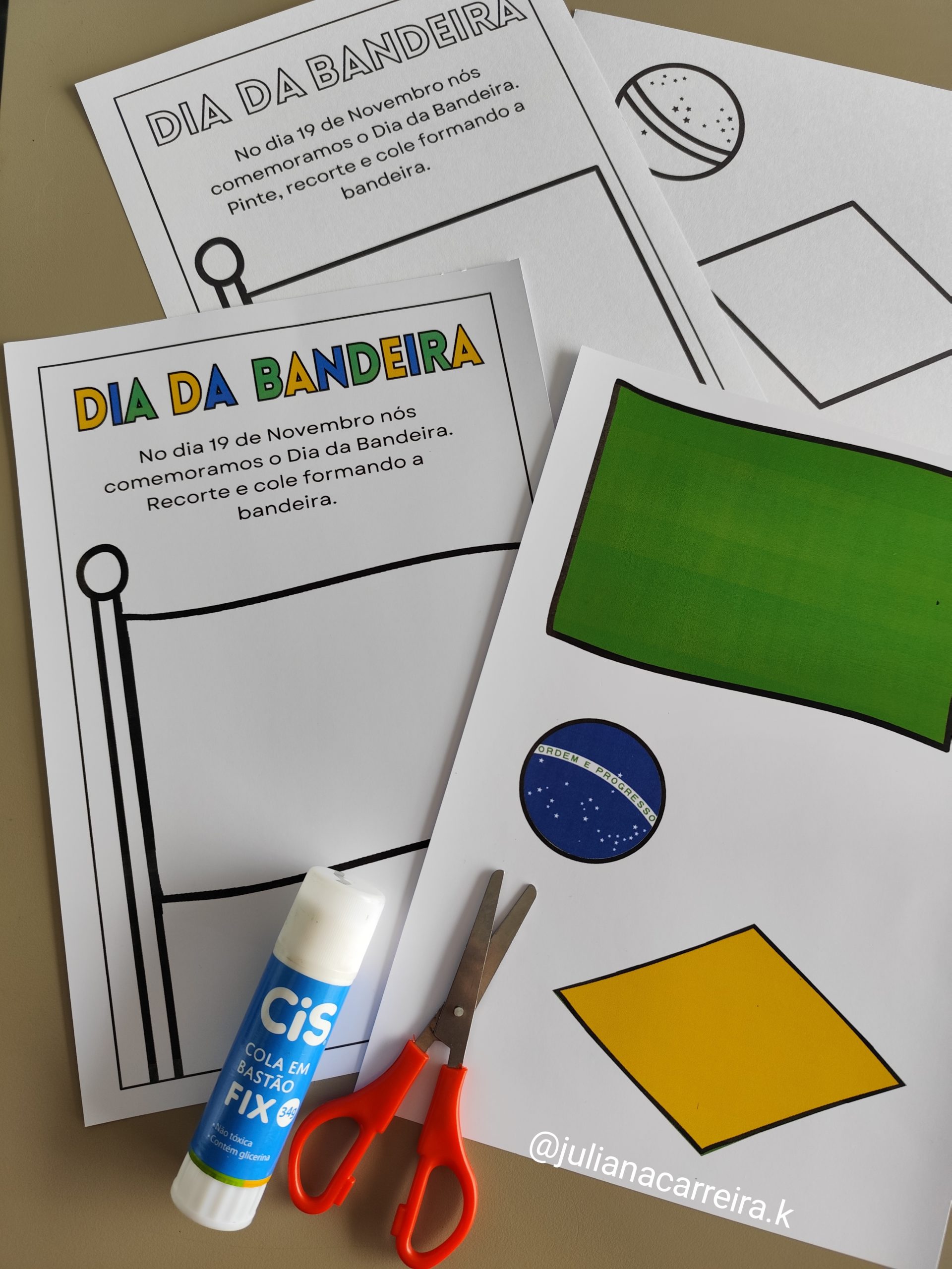 Atividade de recorte e colagem para trabalhar o dia da bandeira de forma lúdica e criativa.