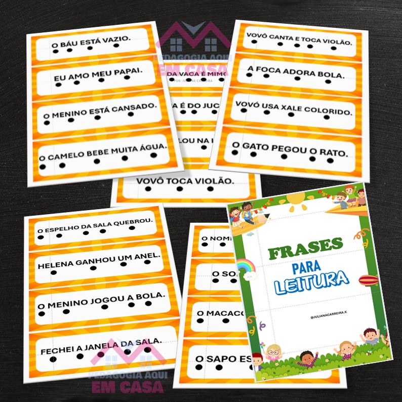 Estimulando a leitura de frases curtas. São palavras com sílabas simples e complexas.