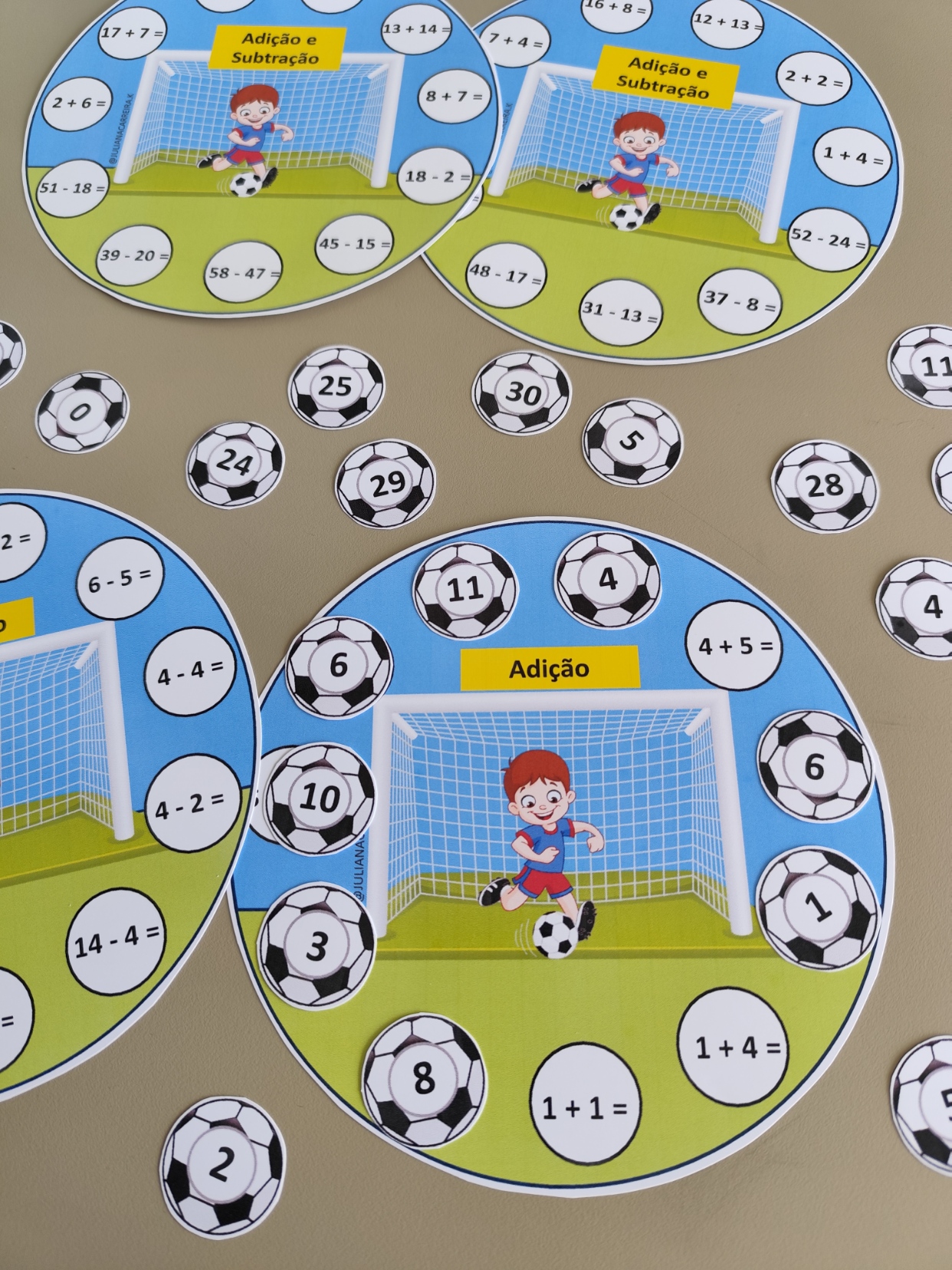 As crianças vão aprender brincando, resolvendo as operações e marcando gols de acertos! 🥅✨