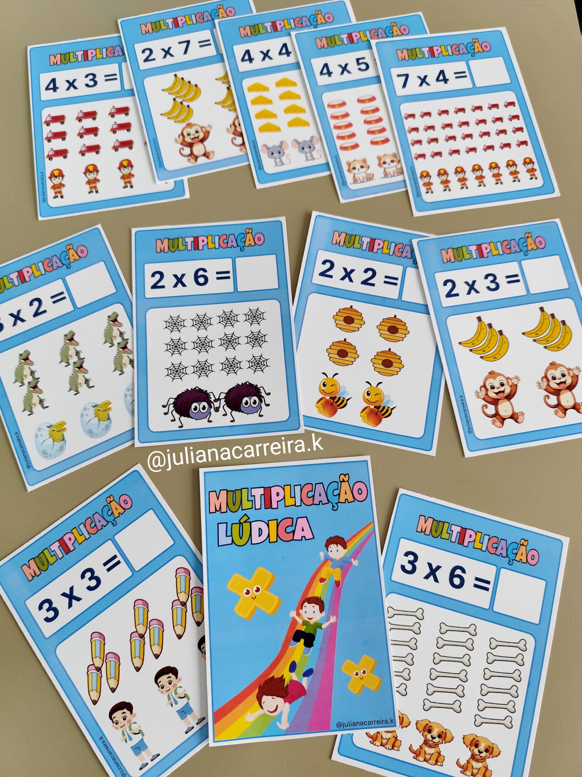 Recurso lúdico para as crianças treinarem a multiplicação, raciocínio lógico e coordenação motora.