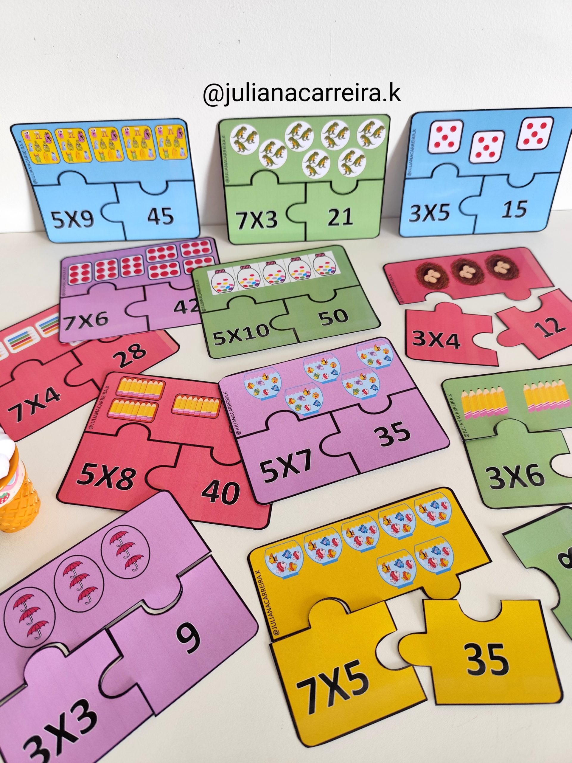 Recurso lúdico para as crianças treinarem as continhas de multiplicação, raciocínio lógico e coordenação motora.