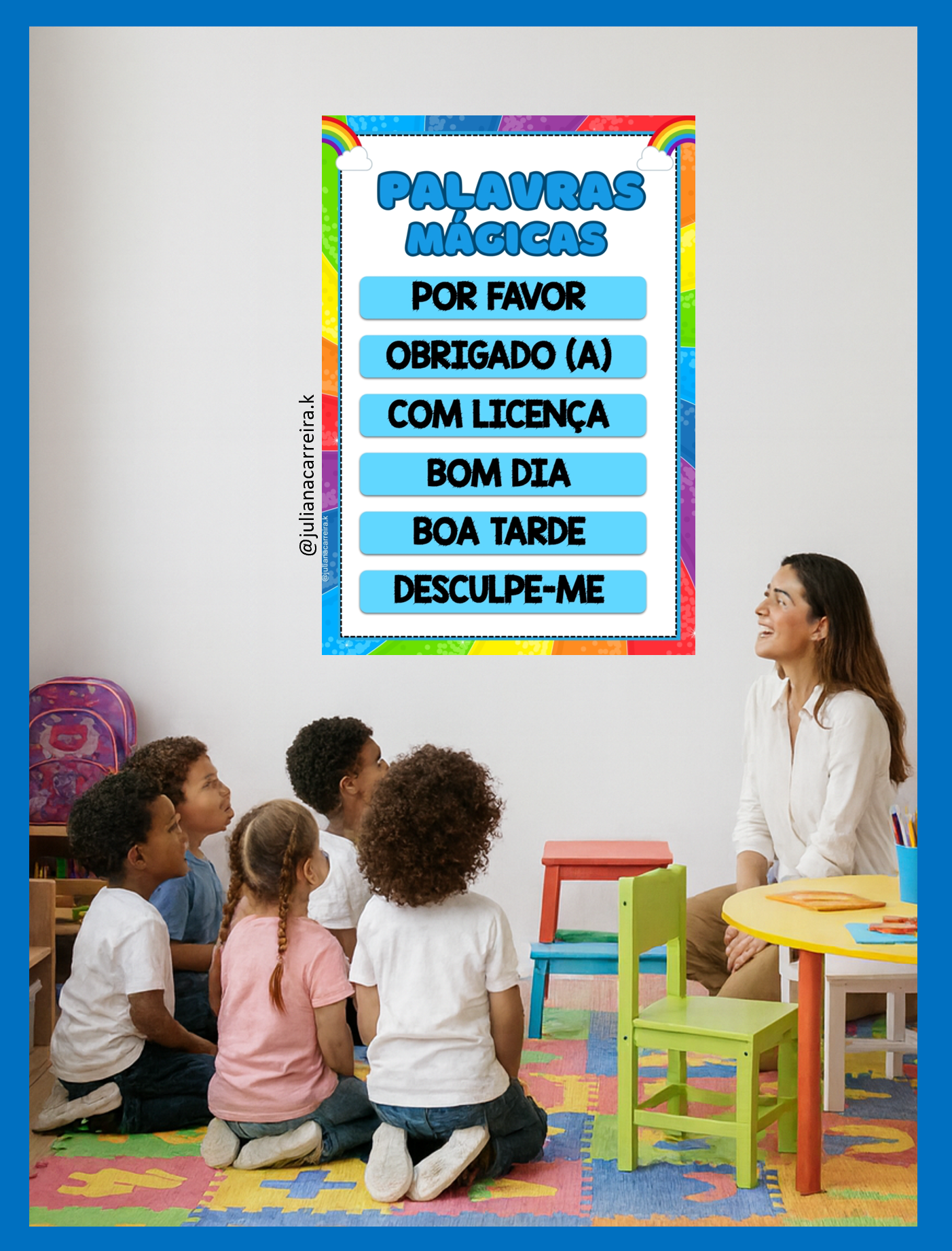 Cartaz com as palavrinhas mágicas para parede de sala de aula.