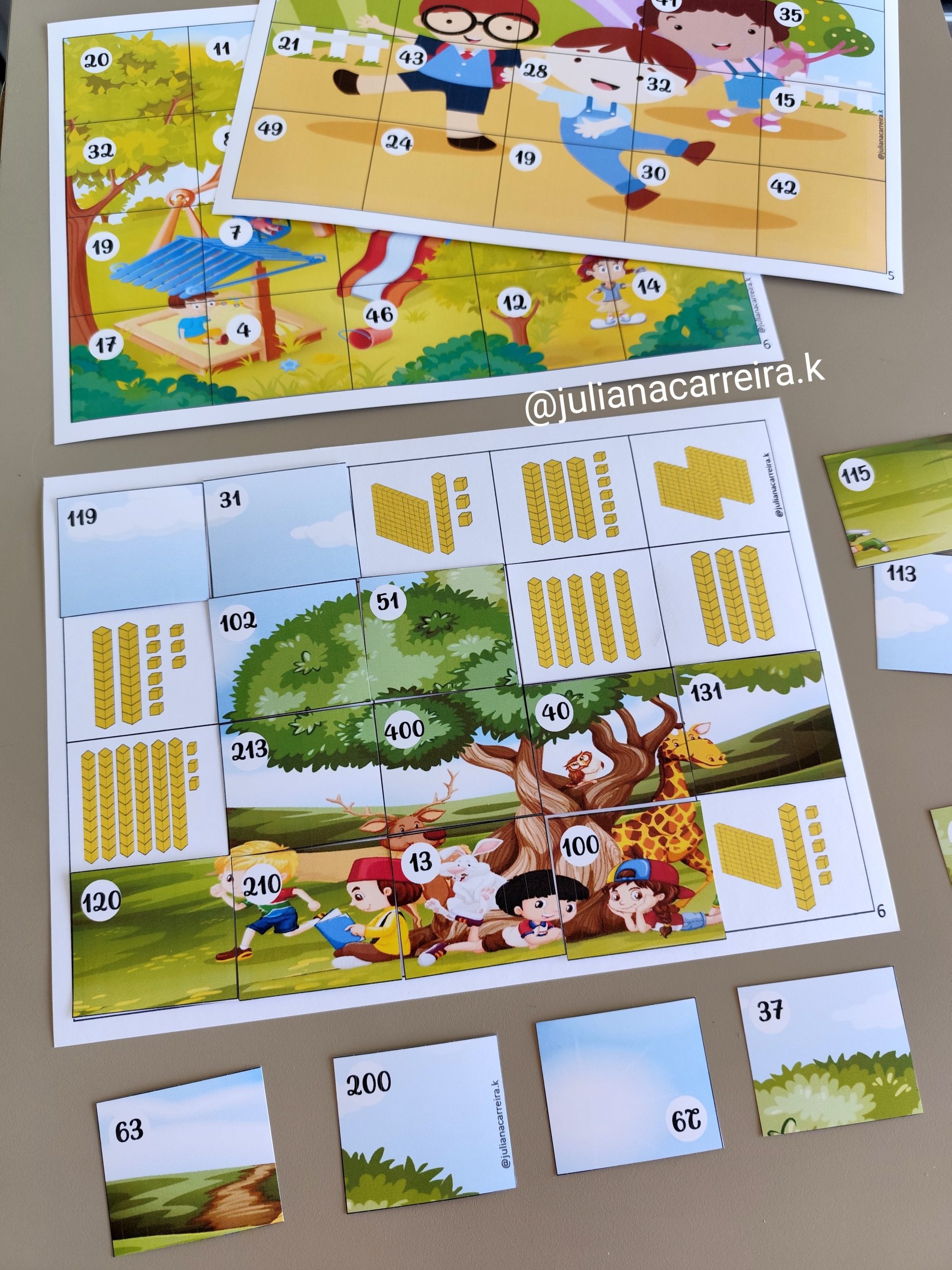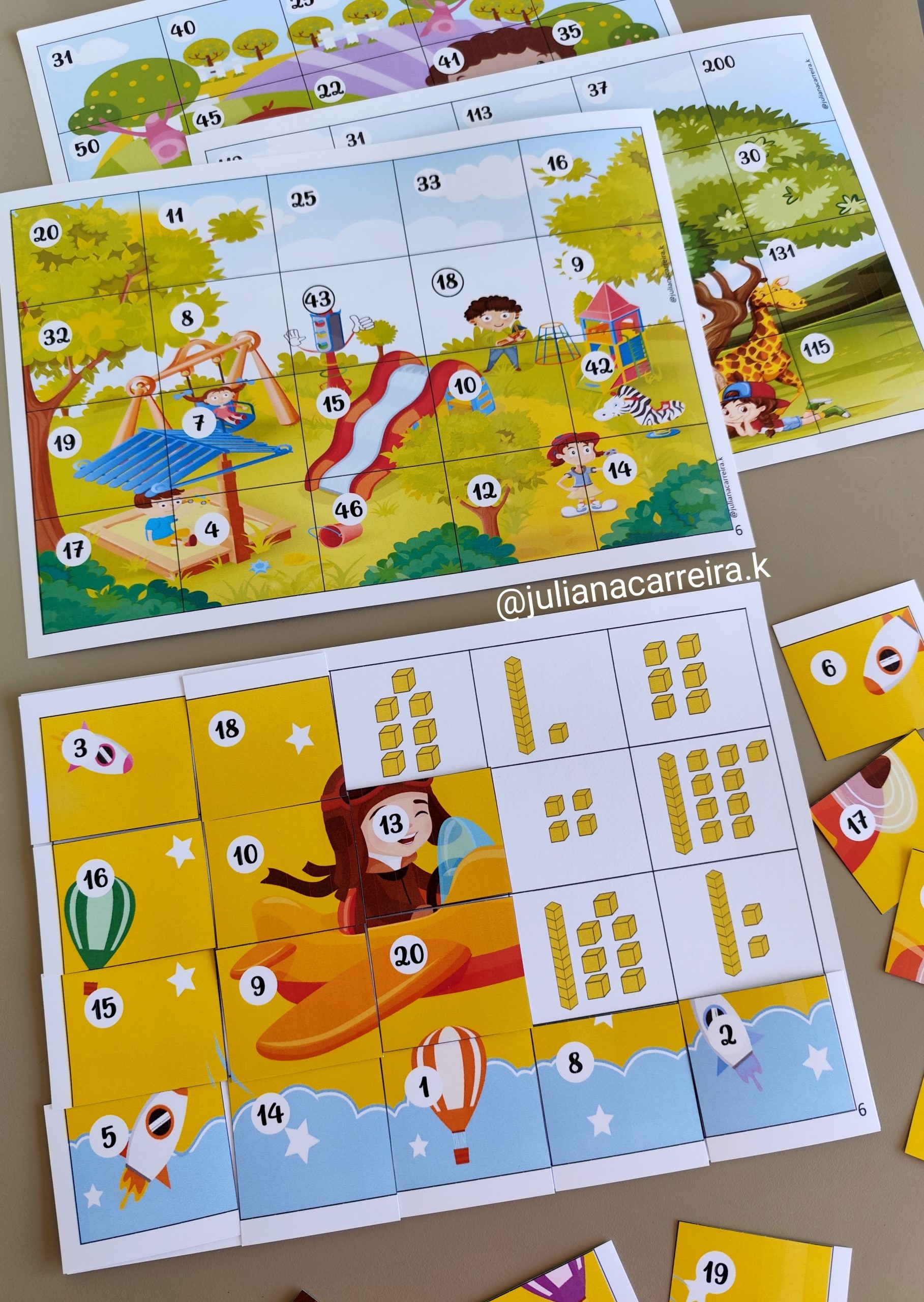 🧩 Contém 6 quebra-cabeças com unidades, dezenas e centenas