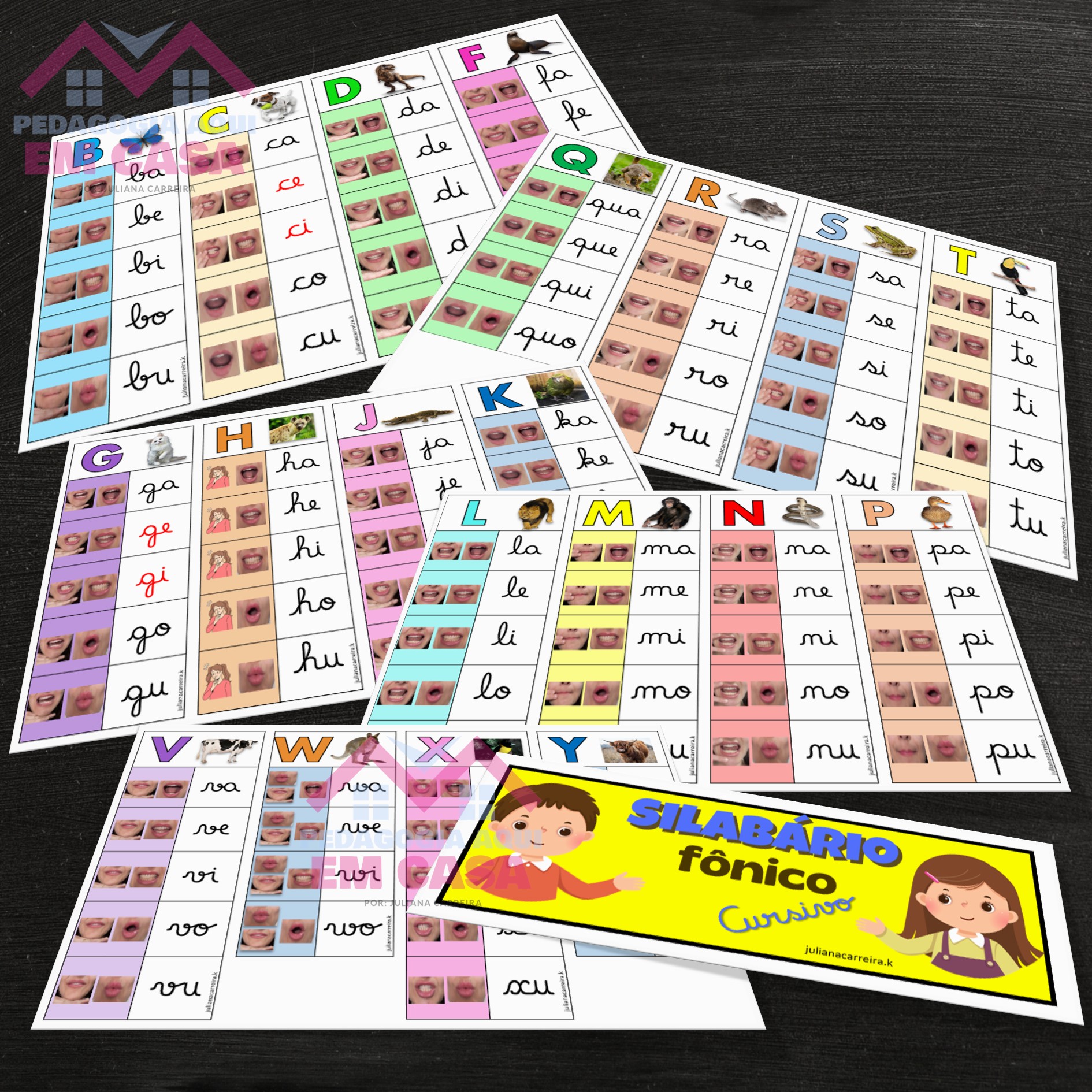 Trabalhando a junção dos sons e formação de sílabas na letra cursiva. Arquivo contempla todas as famílias silábicas simples.