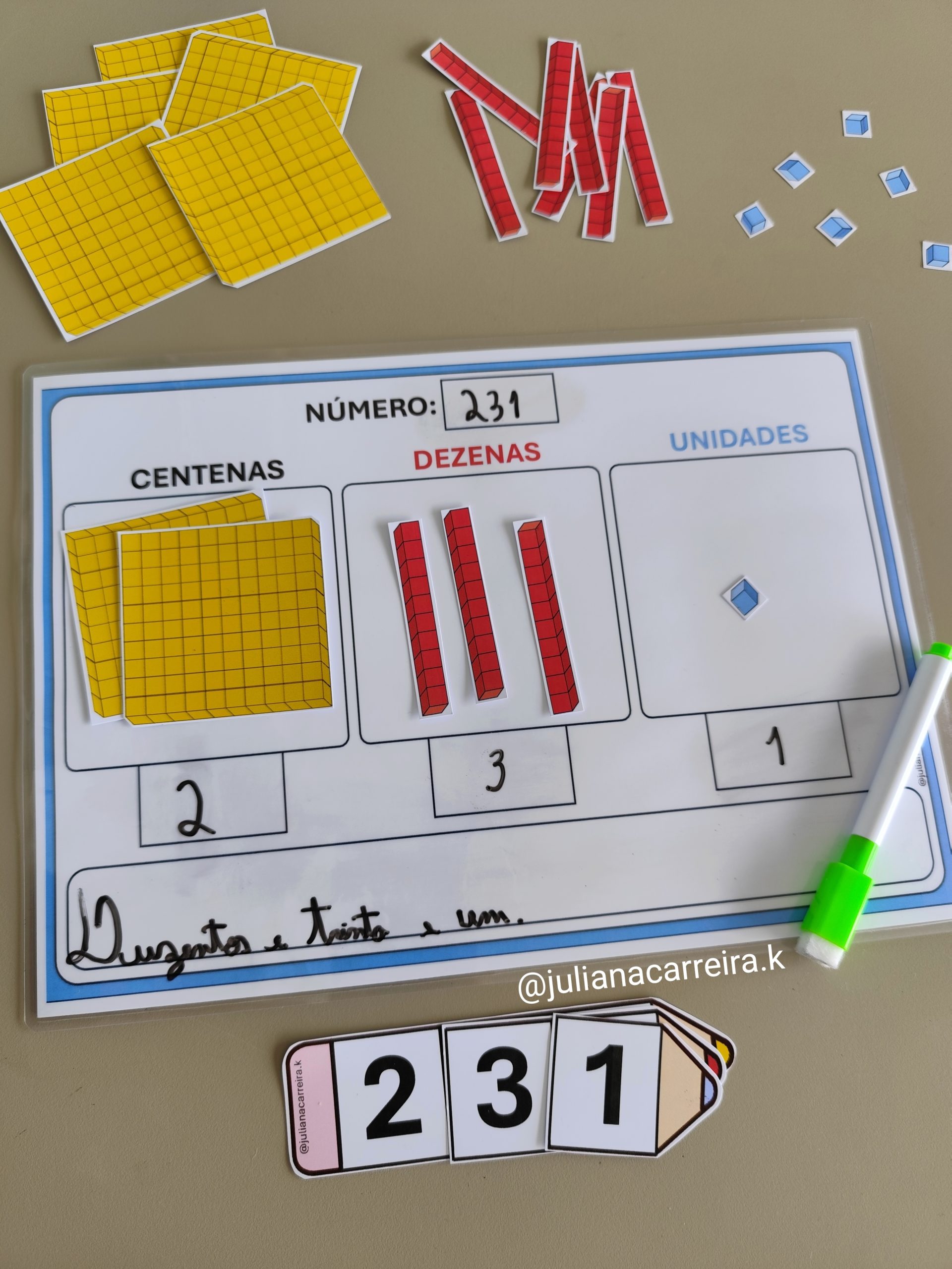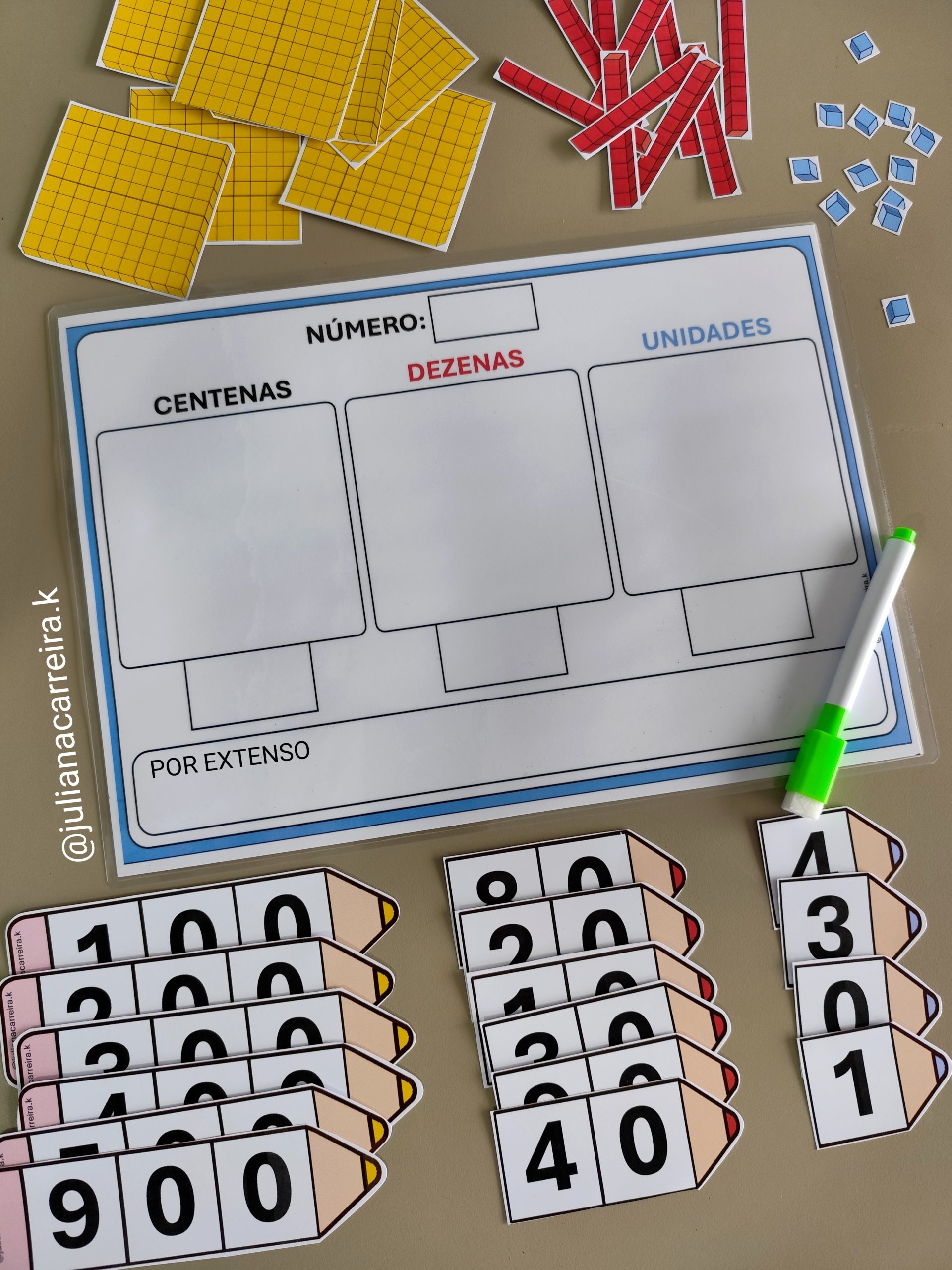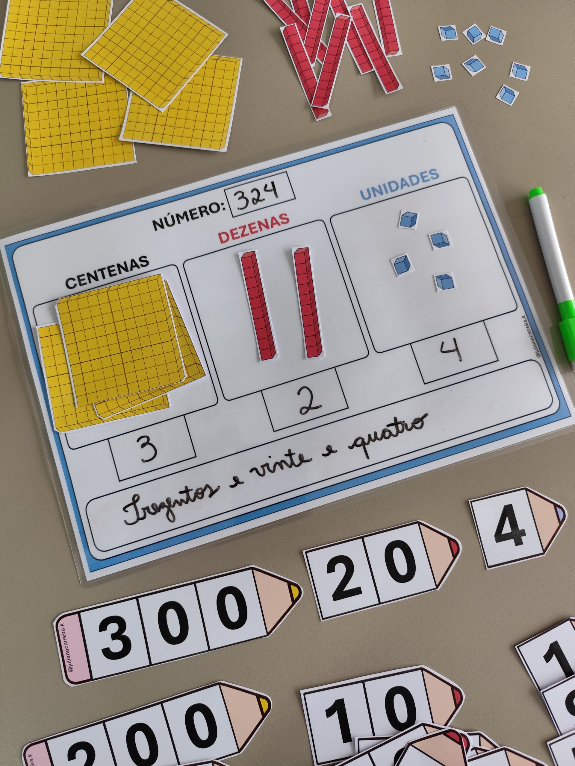 ✨Com este material, a criança monta números, identifica centenas, dezenas e unidades, e escreve por extenso de forma prática e envolvente! ✍️💡