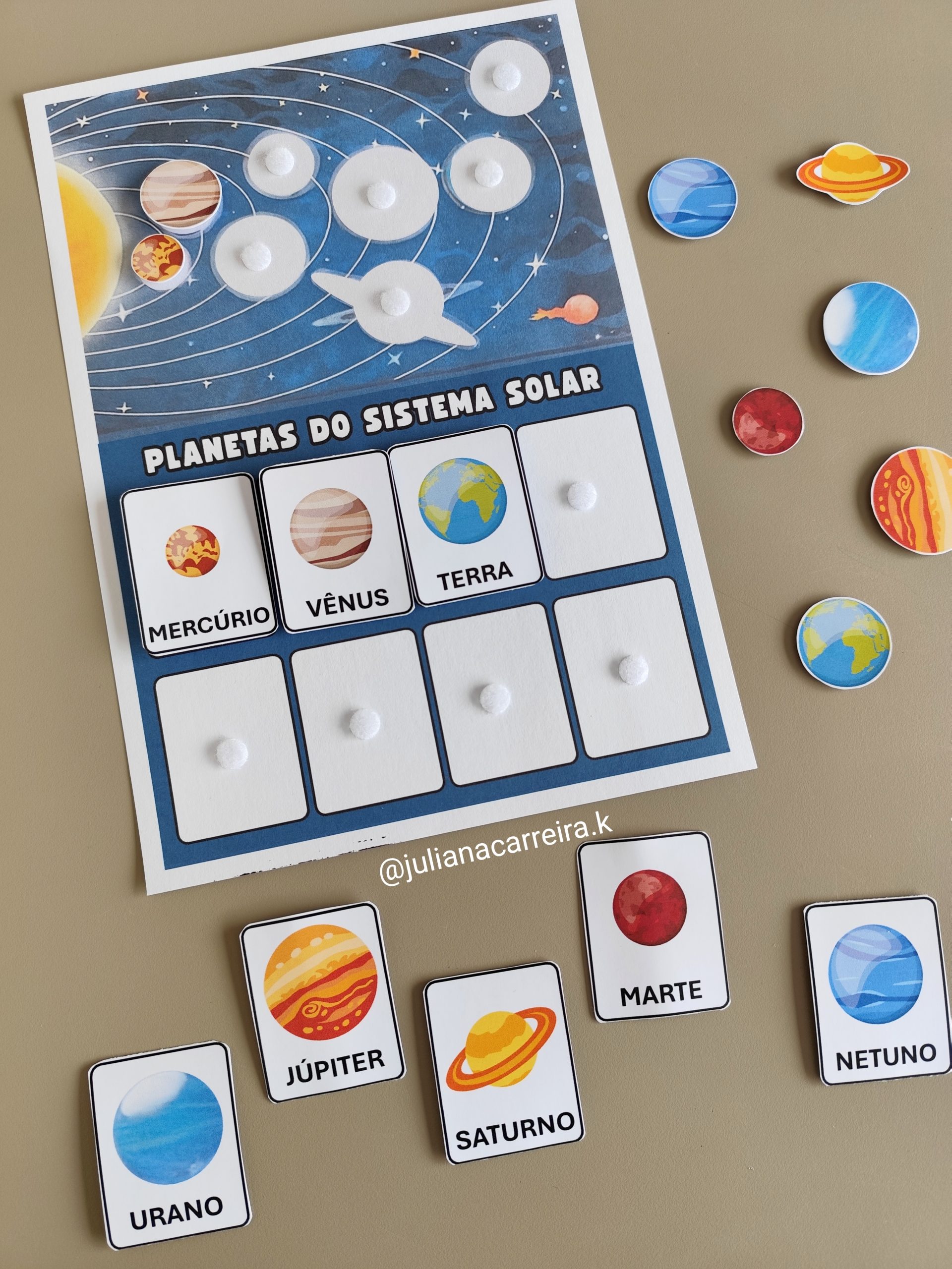 Atividade lúdica para aprender os planetas do Sistema Solar de forma divertida e interativa.